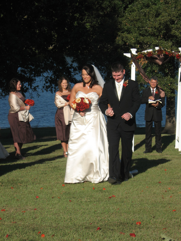 Just as the ceremony ended the Bride and Groom walked toward the