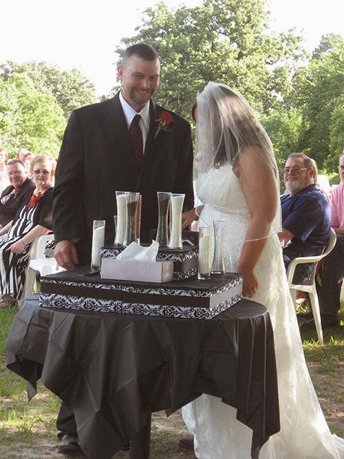 This was a beautiful wedding, the weather was great, a large crowd attended and there was more than enough food. The Russell Brothers did the catering. BBQ Brisket and Chicken along with all the trimmings was enjoyed by the guests. Grandough Baking company brought the beautiful Bride's cake. The Groom's Cake was by a family member and was beautiful as well as so very good. The Bride's Mom and Dad helped with decor along with family and friends and created wonderful ambiance for the wedding. The Groom's family and The Russell Brothers did the catering both days for the Rehearsal Dinner as well. The Bride's Maids were all so beautiful and so much fun. A lively and happy group of girls. They enjoyed staying in the Steed House getting ready for the wedding then spending the night. The Groomsmen were fun as well and helped to round up and move it along when needed. Many guests had been to Cochino at previous family weddings. It was a pleasure to see them and to catch up on the family happenings. There are a lot of little Cochino babies coming along that I want to have photographs of.